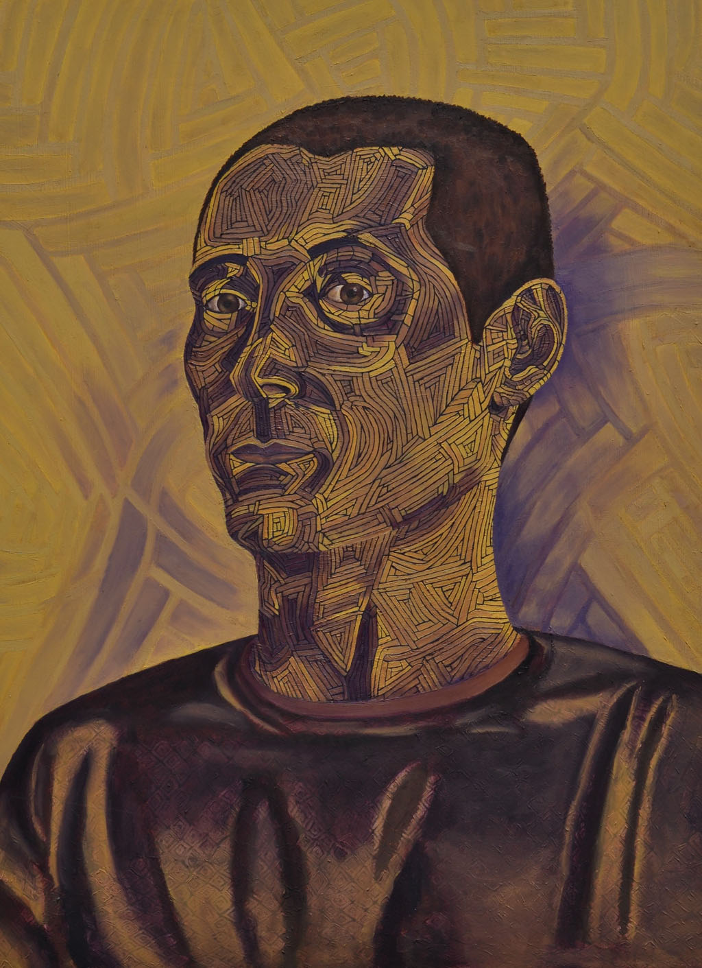 You might have noticed that I left the eyes without pattern. I wanted, overall, for Peter to be the focus of the painting. The eyes stand out so that the viewer can have a connection to the sitter. That is also why, I stayed as true as I could to his form as well. I wanted to create a calm balance so the work becomes one whole piece, pattern and person.